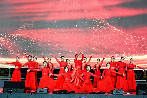 晚會節(jié)目內(nèi)容豐富,每個節(jié)目都在巧妙呼應(yīng)“一城紅酒?百年味道”的主題同時,植入丹鳳地域文化基因。一場倒計時燈光秀率先點燃全場熱情,璀璨光影在體育場建筑上勾勒出紅酒杯、葡萄藤等元素,瞬間將觀眾帶入“紅酒文化”的沉浸式語境中。